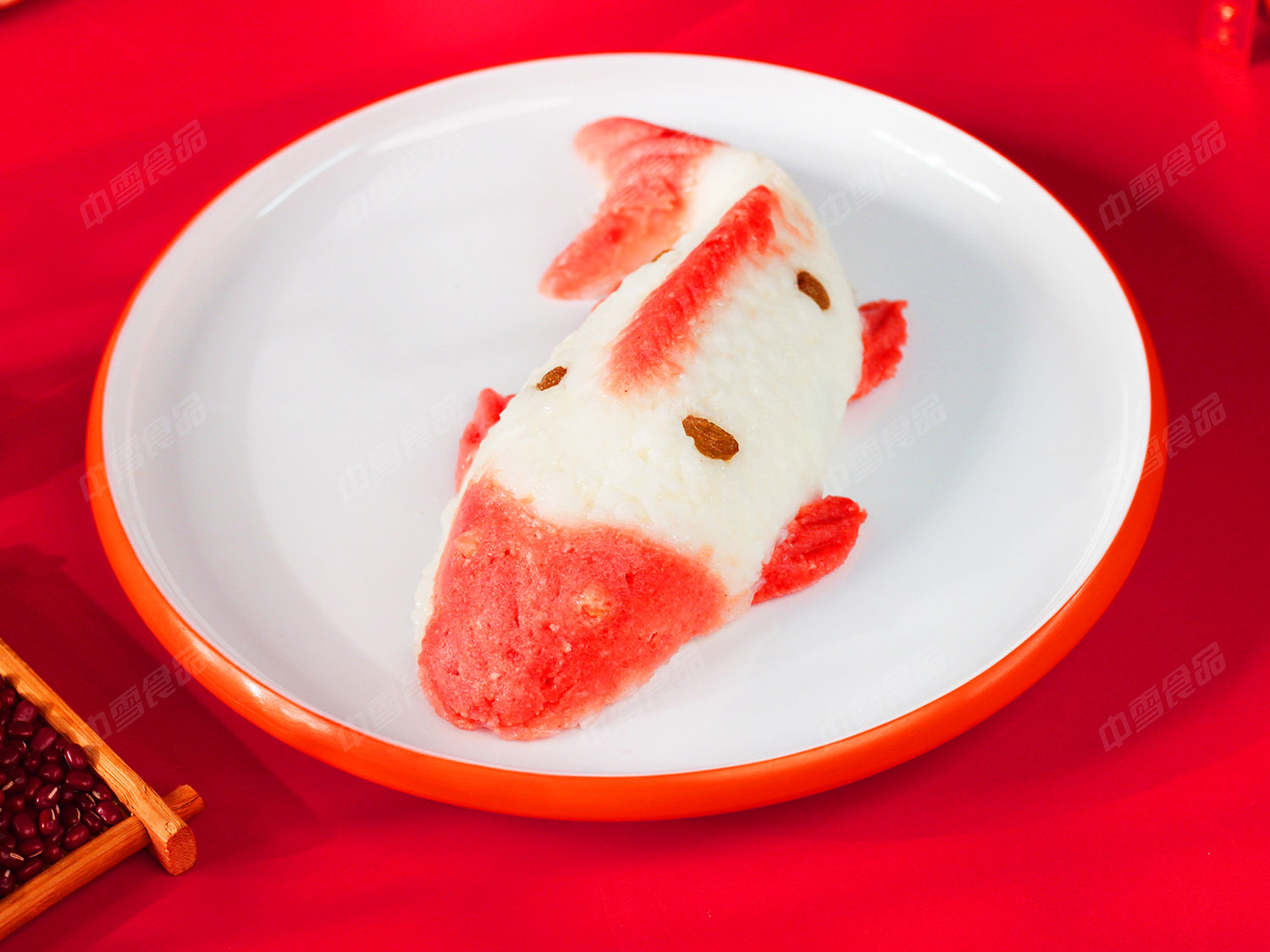 特点:原料选用圆糯米,山楂糕,葡萄干等,精心制作美味鱼形八宝饭,口感软糯,酸甜可口,鲤鱼外形,寓意美好。